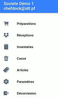 Une fois connecté, le menu est accessible avec tous les modules pour lesquels vous avez les droits d'accès.
